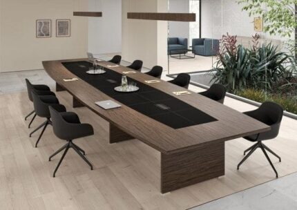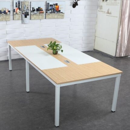 ترابيزة اجتماعات للشركات من خشب MDF إسباني مع شاسيه معدني طاولة متينة وأنيقة، مصنوعة من خشب MDF الإسباني الفاخر مع شاسيه معدني قوي. تصميم عصري يجمع بين العملية والمتانة، مثالية للاجتماعات في بيئات العمل الحديثة.