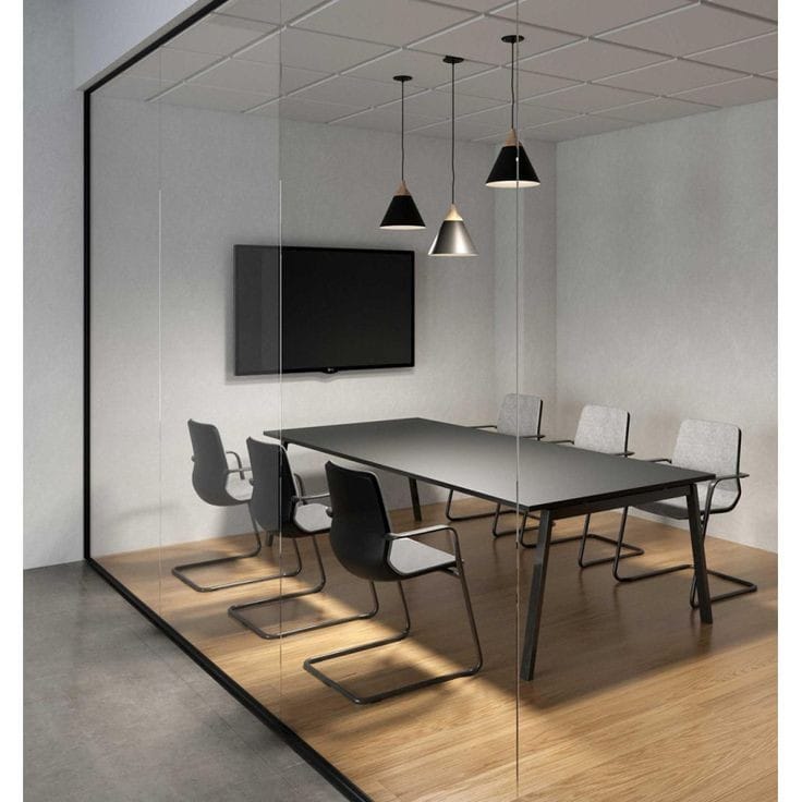 ترابيزه اجتماعات مقاس (120*240) سم مصنعه من الخشب mdf الملصق قشرة صناعى عالية الجودة ومزود بقشاط pvc ضد الصدمات تخانة 25مم مثبته علي شاسية معدني دهان الكتروستاتيك