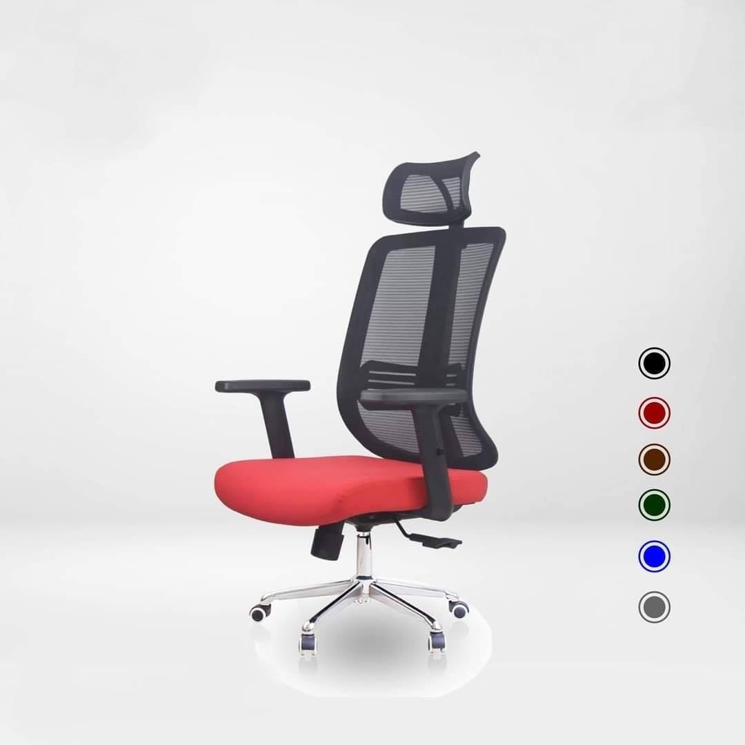كرسي شبكي بقاعدة ظهر عالية وتنجيد من الاسفنج عالي الكثافة ومغطى بطبقة من القماش عالي الجودة وايدي ثابتة ومصنوع من الفايبر والكرسي مزود بنجمة من المعدن ومزود بنظام هيدروليك وميكانيكا
