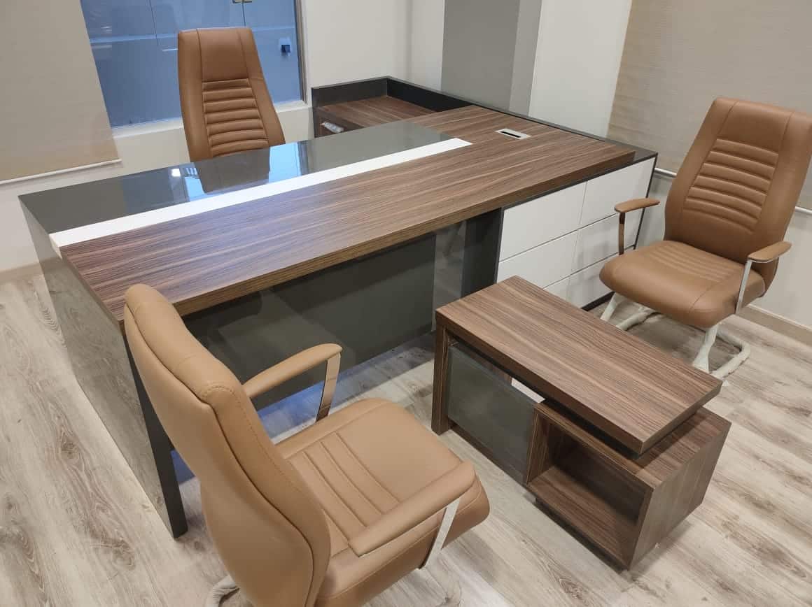 مكتب مدير مقاس 200سم مصنع من الخشب mdf وملصق قشرة طبيعي دهان بلوستير سمك القرصه 5سم