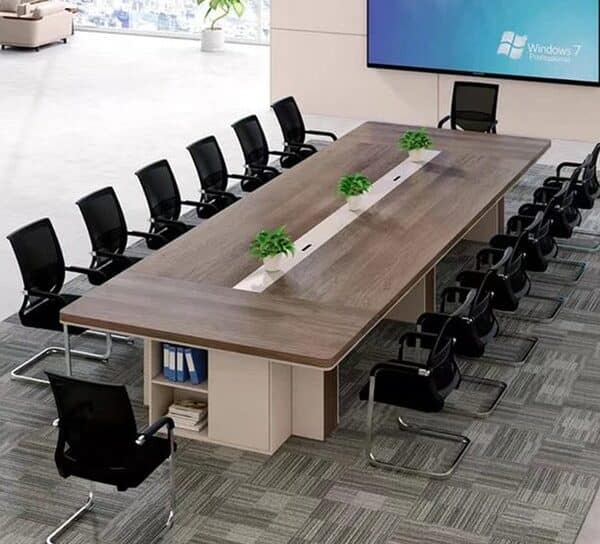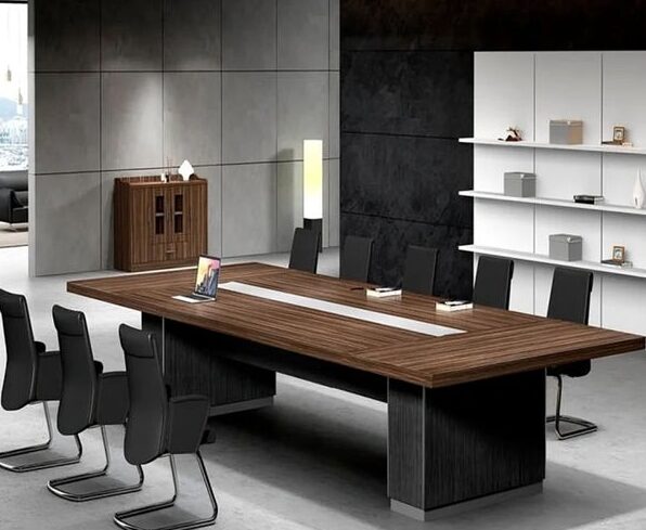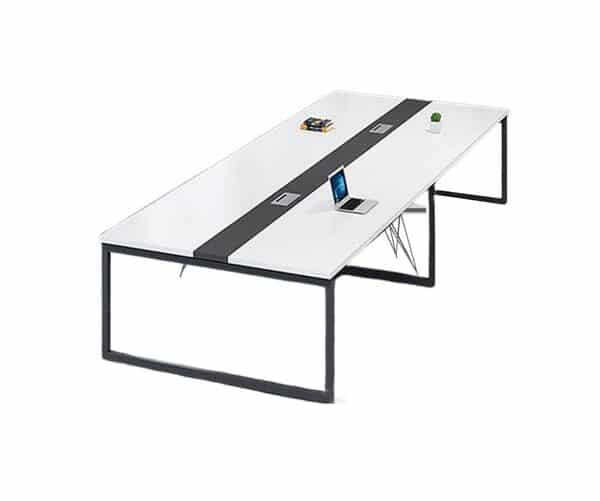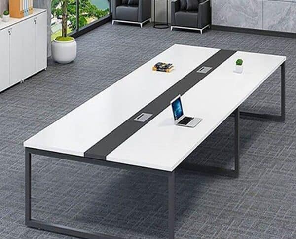 ترابيزة اجتماعات للشركات من خشب MDF إسباني مع شاسيه معدني طاولة متينة وأنيقة، مصنوعة من خشب MDF الإسباني الفاخر مع